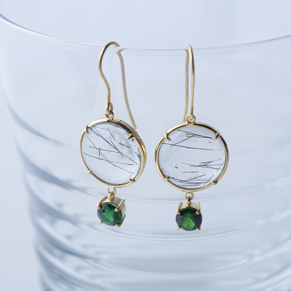 素材:ブラックルチルクオーツ、グリーンダイオプサイト、シルバー925+18kgp
