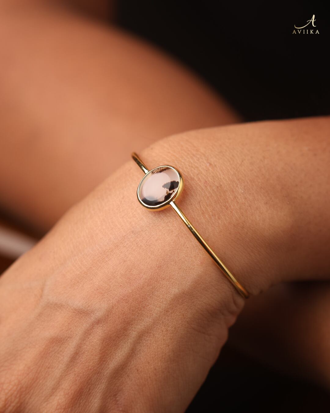 Sterling Silver 18K Gold Plated Adjustable Cuff with Agate